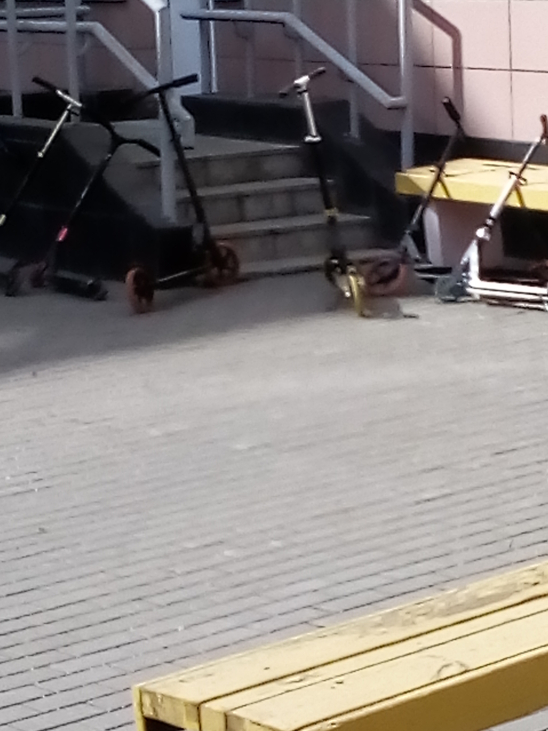 Стоянка самокатов была убрана на зимний период. Сейчас выставлена в неудобное место для покраски.